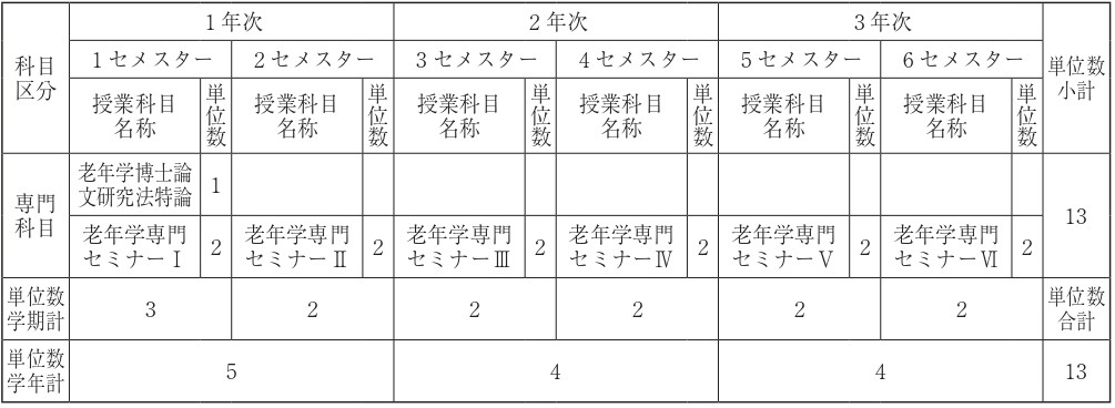 入学時の第 1 セメスターで履修する「博士論文研究法特論」( 3 単位)では、修士課程で培った研究能力を下敷きに、研究者として自立して活動を行うに足る力を養います。