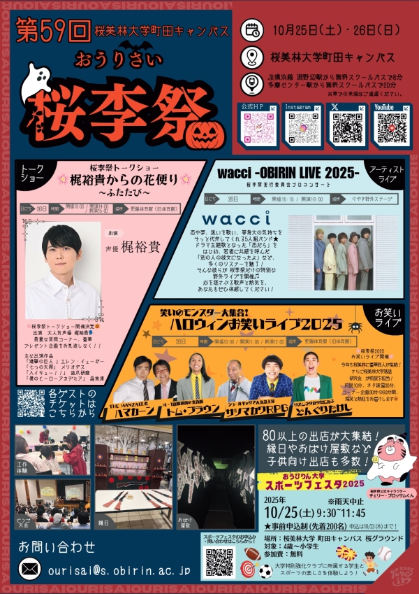 桜美林大学町田キャンパスでは、第59回「桜李祭(おうりさい)」を10月25日(土)・26日(日)に開催いたします。