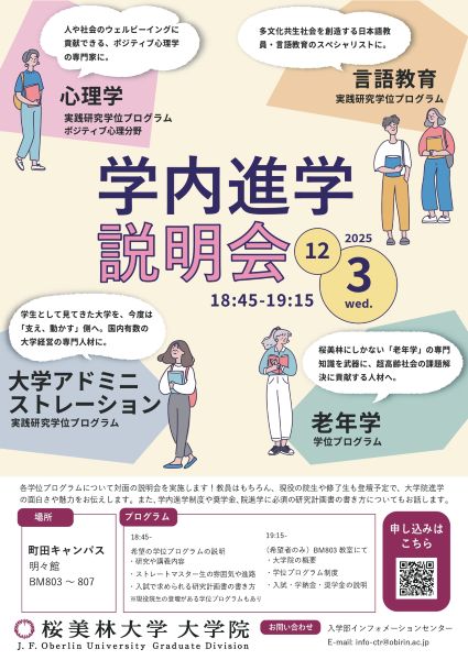 本学大学院の各学位プログラムについて対面の説明会を実施します。