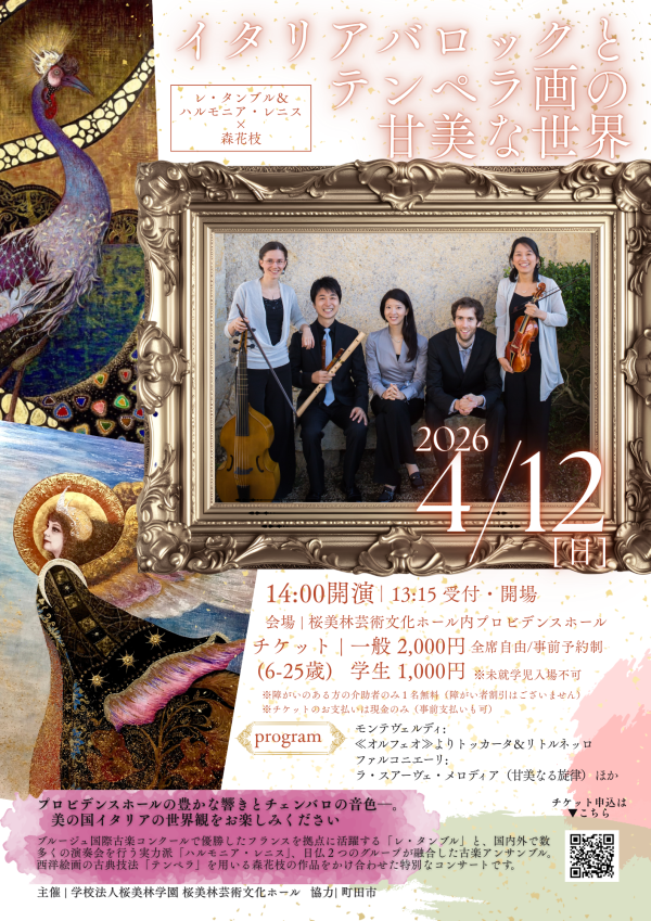 そこに、西洋絵画の古典技法「テンペラ」を用いる森花枝の作品をかけ合わせた特別なコンサートです。