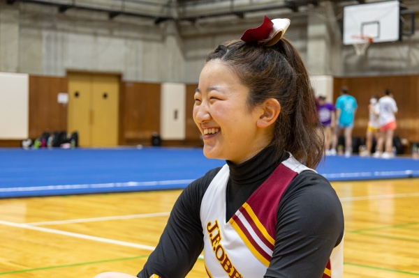 チアリーディングとは、誰か一人でも欠けてしまうと成り立たない競技です。一つの演技をみんなで作り上げる過程や、大会で完成できたときの達成感が魅力です。チアリーディングを通じて、仲間と協力し合うことの大切さを学んできました。これまで部活動に関わってくださった方に恩返しをするという気持ちで、JAPAN CUPでは良い成績を残したいです。見に来てくださるお客さんに、笑顔と元気と勇気を届けられるように頑張りたいと思います。