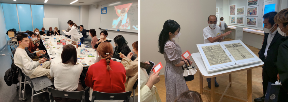 右:広告に関する古今の資料を収蔵する「アドミュージアム東京」を学生たちと訪問