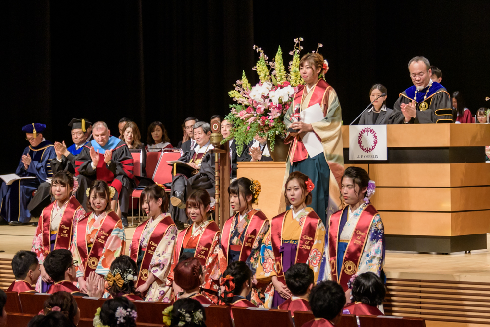 式はキリスト教形式で進行し、桜美林オーケストラの生演奏やクワイヤーの歌声が華を添えました。畑山浩昭学長は、式辞の中で卒業生に"true to yourself"(自分に正直であること)という言葉を贈り、「自分の頭で考えて、自分の言葉で理解して、自分自身が納得した上で、その時に出せる自分の最大限の判断を信じて、行動することが大事だと思います。望みを失わないこと、諦めないこと、人のために尽くすことが最終的には豊かな人生につながると信じて、自分なりの学而事人を実践して欲しい」と話しました。