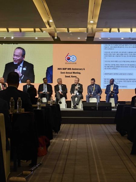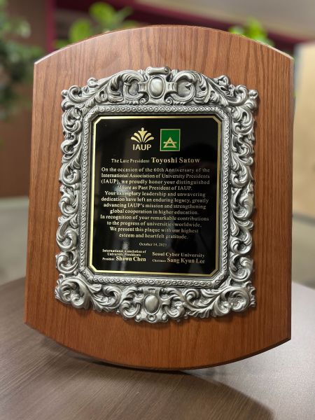 2025年10月14日(火)、韓国・ソウルで開催された世界大学総長協会(IAUP)60周年記念総会において、畑山学長が表彰盾を授与されました。