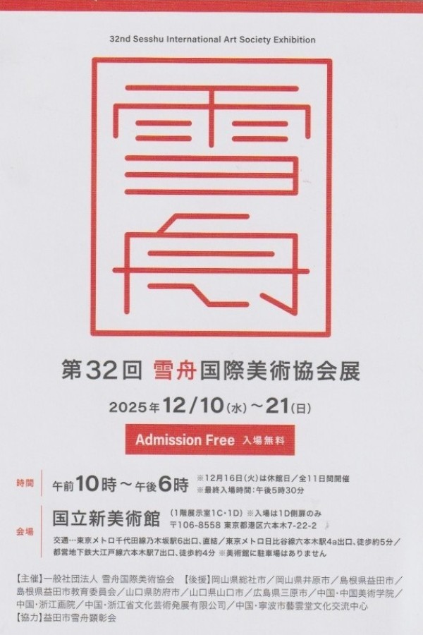芸術文化学群ビジュアル・アーツ専修の藤崎いづみゼミ(日本画)の学生8人が藤崎教授とともに、国立新美術館で行われる「第32回雪舟国際美術協会展」に12月10日(水)~12月21日(日)まで作品を出展します。