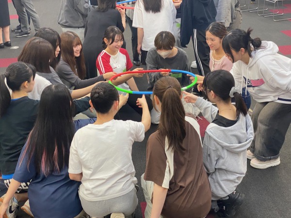 上級生と一緒に体を動かして交流(精神保健福祉学専攻)