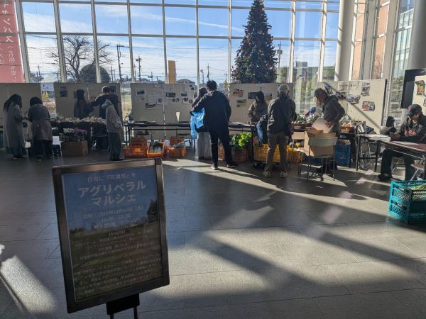 2025年12月10日(水)、桜美林大学町田キャンパスにて、地元野菜の販売会「アグリベラルマルシェ2025~日常に「可農性」を~」を開催しました。本マルシェは、リベラルアーツ学群の秋学期授業「探究サービスラーニング(農業とリベラルアーツ)」(担当教員:片山博文教授・江藤佑特任講師)の一環として企画されたもので、秋学期を通じて、履修生たちは町田キャンパス周辺の農場で定期的にボランティア活動を行い、そのご縁から農場の皆さまをキャンパスにお招きし、本イベントが実現しました。