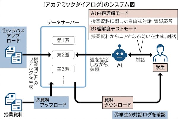 その上で、田中准教授は自身で開発した学習支援システム「アカデミックダイアログ」について報告しています。このシステムは、学生がどの資料に基づいて、どのように理解を深めていったのかという思考の軌跡を記録・可視化できる点に特徴があります。