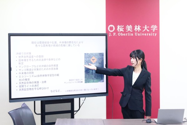 3月6日(金)町田キャンパスにて、国内留学の制度を利用し名桜大学(沖縄県)で半年間学んだリベラルアーツ学群の学生1人の成果報告会が行われました。