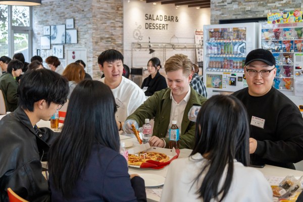 オリエンテーション終了後には、約20人の先輩学生が加わり交流会を開催しました。食事やゲームを通じて、同じ学群や出身地域の学生同士が交流を深め、当初は緊張した様子だった新入生にも次第に笑顔が。和やかな雰囲気の中で親睦を深める機会となりました。