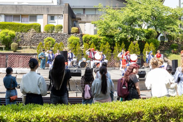 当日は、1,340人の新入生が町田キャンパスに集まり、教室内で行われた友達づくり企画や、各団体の紹介ブースに参加。天候にも恵まれ、けやきの広場と明々館のステージでは、吹奏楽部、沖縄エイサー部、軽音楽部、Brisk、フォークソング研究部、アイドル研究会Like、アカペラ部桜唄、モダンジャズ研究部、桜美林大学クワイヤー、チアリーディング部、女子ラクロス部、フラ部Luana、ソングリーディング部、O.D.C.(ダンス部)、空手道部、桜美林大学オーケストラの16団体が特別パフォーマンスを披露しました。新入生たちは新しい友達とともに、先輩たちの話を聞き、クラブの雰囲気を肌で感じる1日としました。