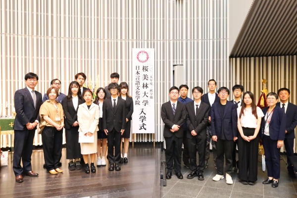 日本言語文化学院入学式は9月16日町田キャンパス荊冠堂にて桜美林大学入学式と同時に行われました。 秋学期入学生は16人です。