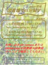 6月10日(木) 17:00~17:45 topic: Advice (asking for/ giving)