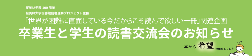 「世界が困難に直面している今だからこそ読んで欲しい一冊」を企画に関連して、卒業生のみなさまと学生のささやかな読書交流会を開催いたします。