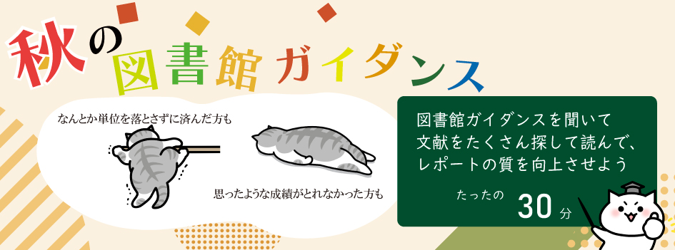 今回は、春学期に授業で使い方を覚えた1年生も9月に入学した新入生もまたそれ以上の学年の学生でも図書館の便利な使い方をご案内します。
