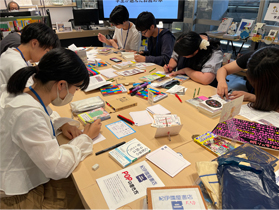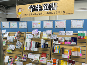 「学生選書ツアー」とは、学生が書店に出向き、図書館にあったら良い本、友人に勧めたい本を選びます。学生の読書のきっかけになるように、学生目線で本を選びました。手書きのPOPの効果や売れ行きへの影響など、書店の販売促進活動の一端の解説を聞き、選んだ本のPOPを書店のPOP作成名人の指導の下作成しました。