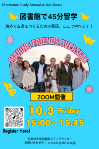 「図書館で45分留学」は、留学を想定したさまざまなシチュエーションのなかで、より自然な表現やあなたの英語でのコミュニケーションに磨きをかけることができます。また留学後に、これまで頑張ってきたことをアウトプットできる、ネイティブの先生と会話をする絶好のチャンス!!
