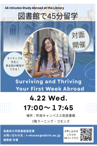 「図書館で45分留学」は、留学を想定したさまざまなシチュエーションのなかで、より自然な表現やあなたの英語でのコミュニケーションに磨きをかけることができます。また留学後に、これまで頑張ってきたことをアウトプットできる、ネイティブの先生と会話をする絶好のチャンス!!