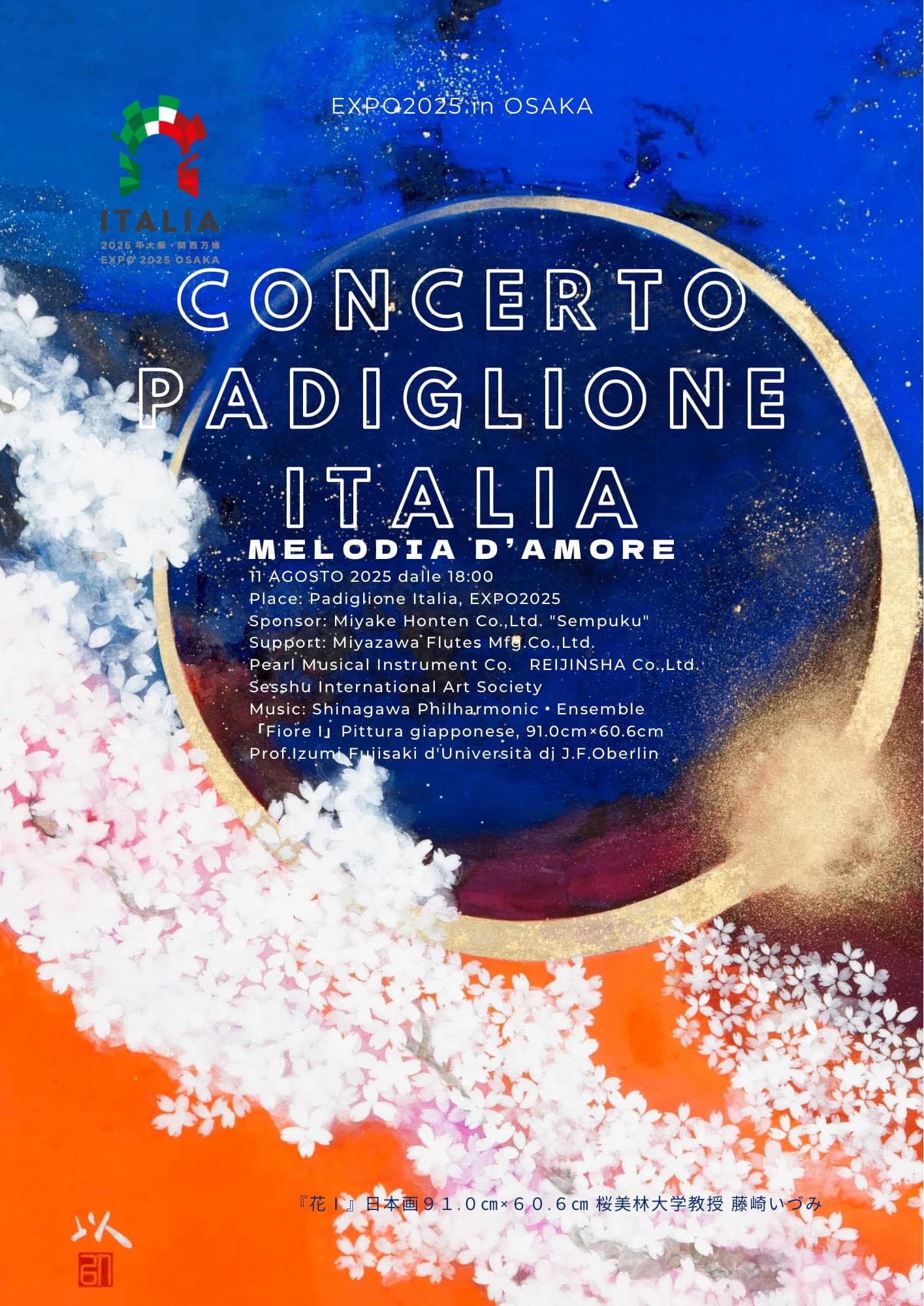 そして、2025年8月に伝統的な日本画をメディアアート表現、デジタルテクノロジーと日本の美意識を融合し、私の作品を展開した素晴らしいご縁がありました。『EXPO2025』大阪・関西万博イタリア館の劇場でのオペラアリア・ナイトコンサートプログラムのデザインに採用、ステージのバックスクリーンに作品が投影されたのです」