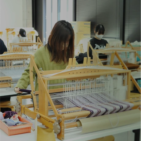 織物作品を制作するためのアトリエです。合計15台の織り機が設置されています。