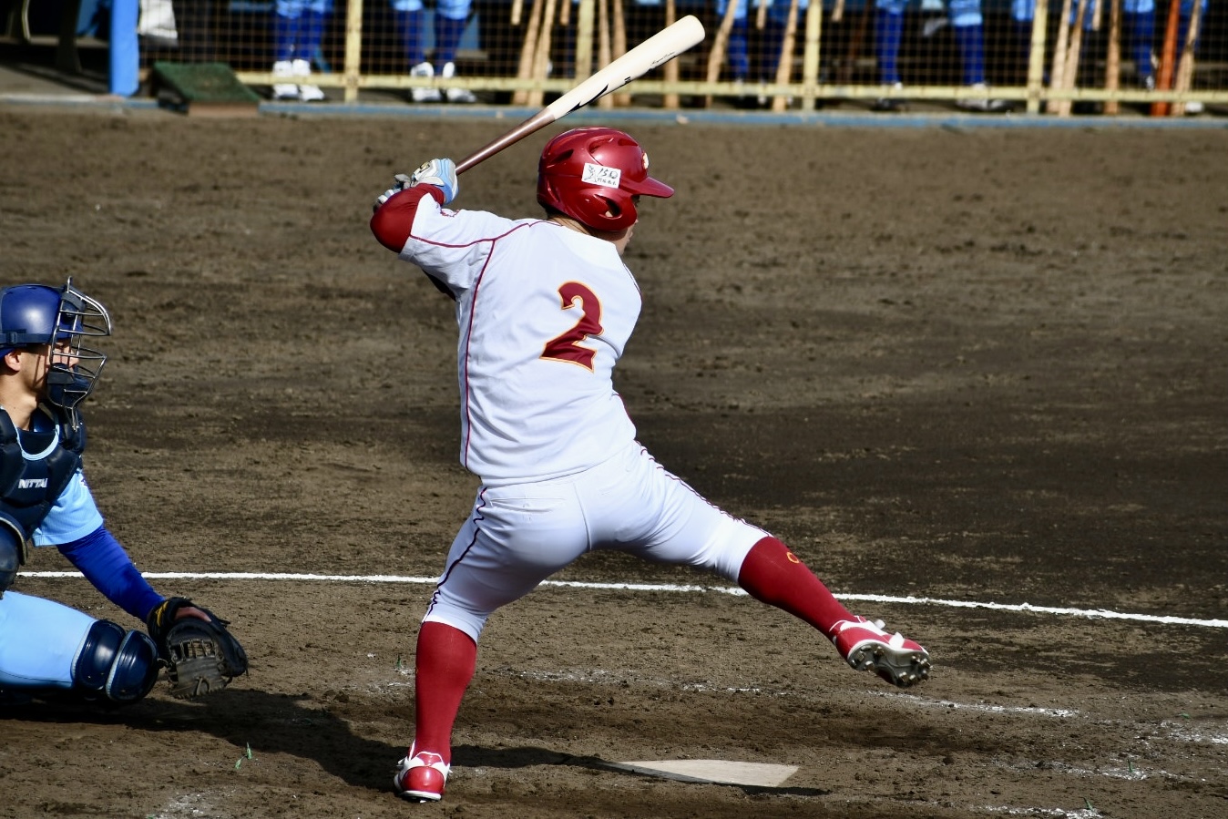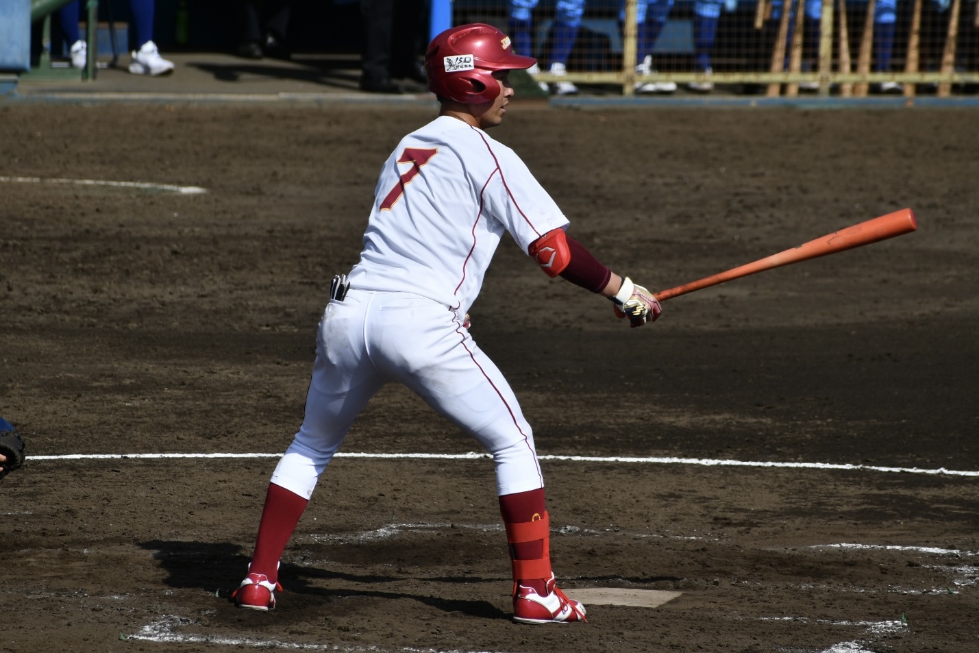 打線が硬直状態の中、チームに勢いをのせる安打を放った稲村紀(健福3年・健大高崎)