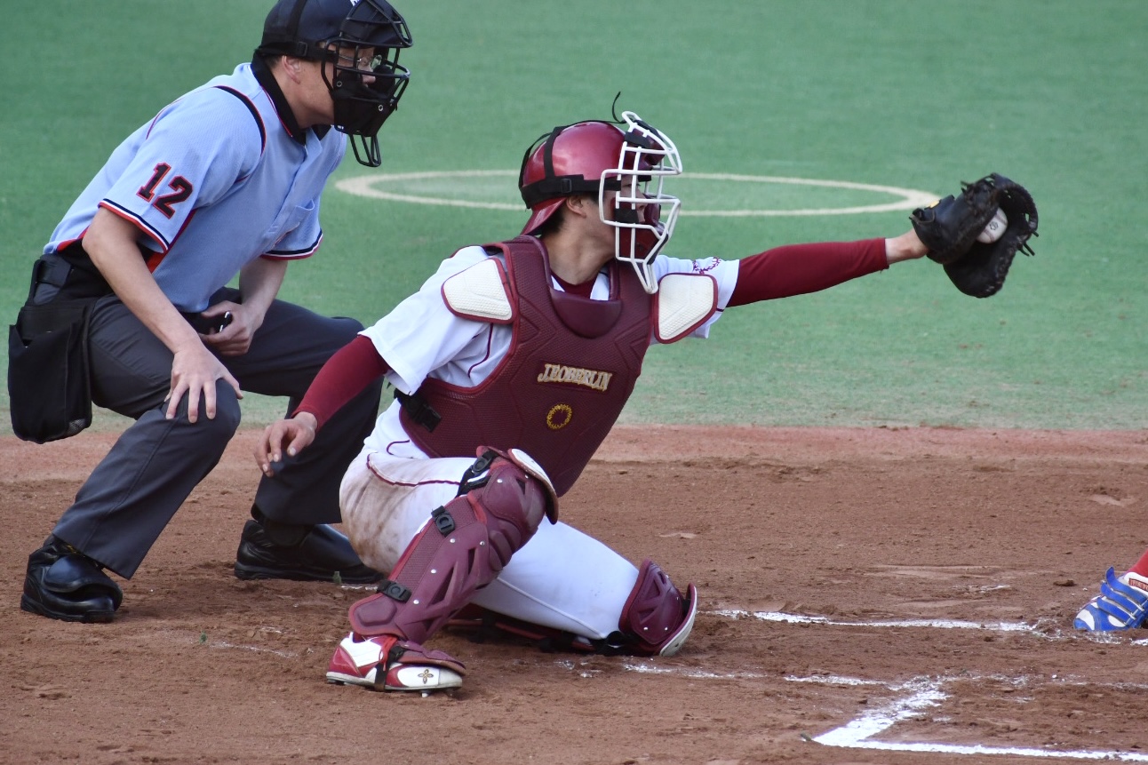 巧みなリードで次々と三振を奪い守備で貢献した福田章也(健福2年・市立岐阜商業)