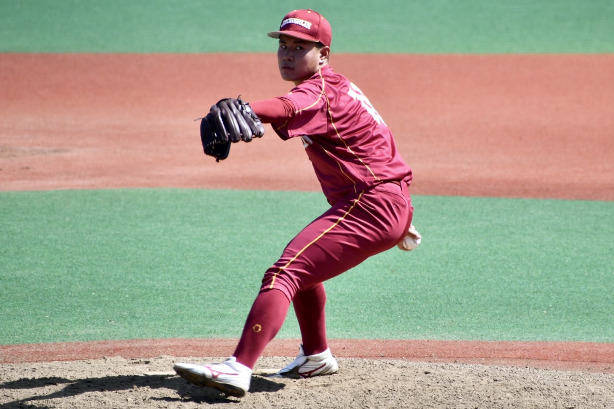 6回まで無失点の好投をみせ勝利に貢献した山本雅樹(健福4年・中越)