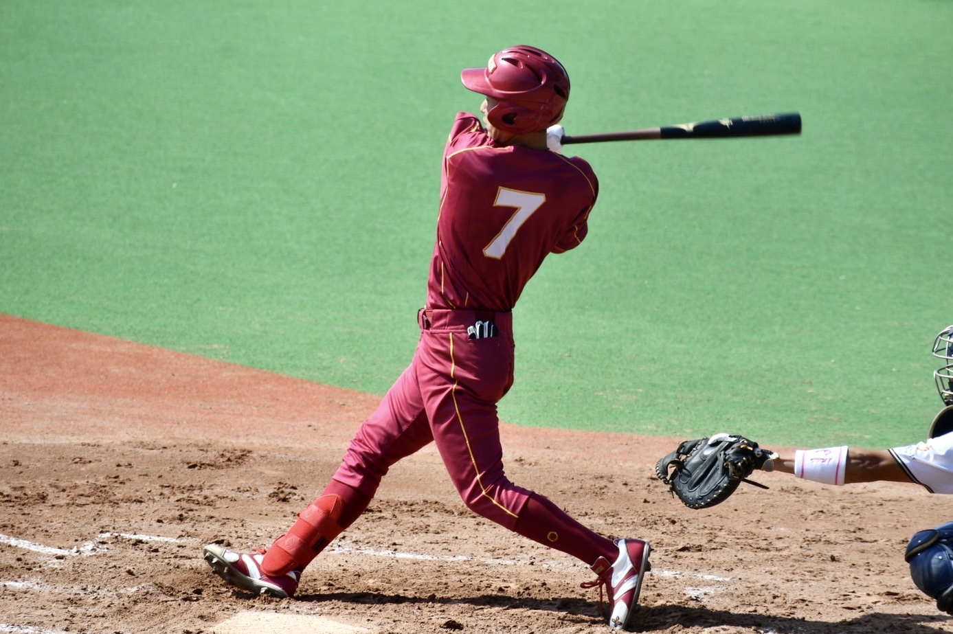 昨日からの5打席連続安打となるタイムリーを放った森田智貴(健福4年・霞ヶ浦)