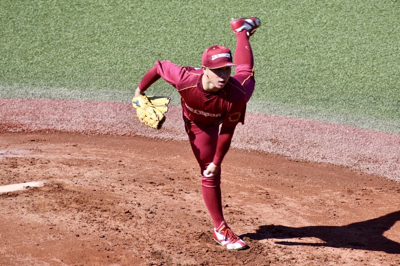 ピンチの場面で2者連続三振を奪った西有喜(健福4年・東邦)