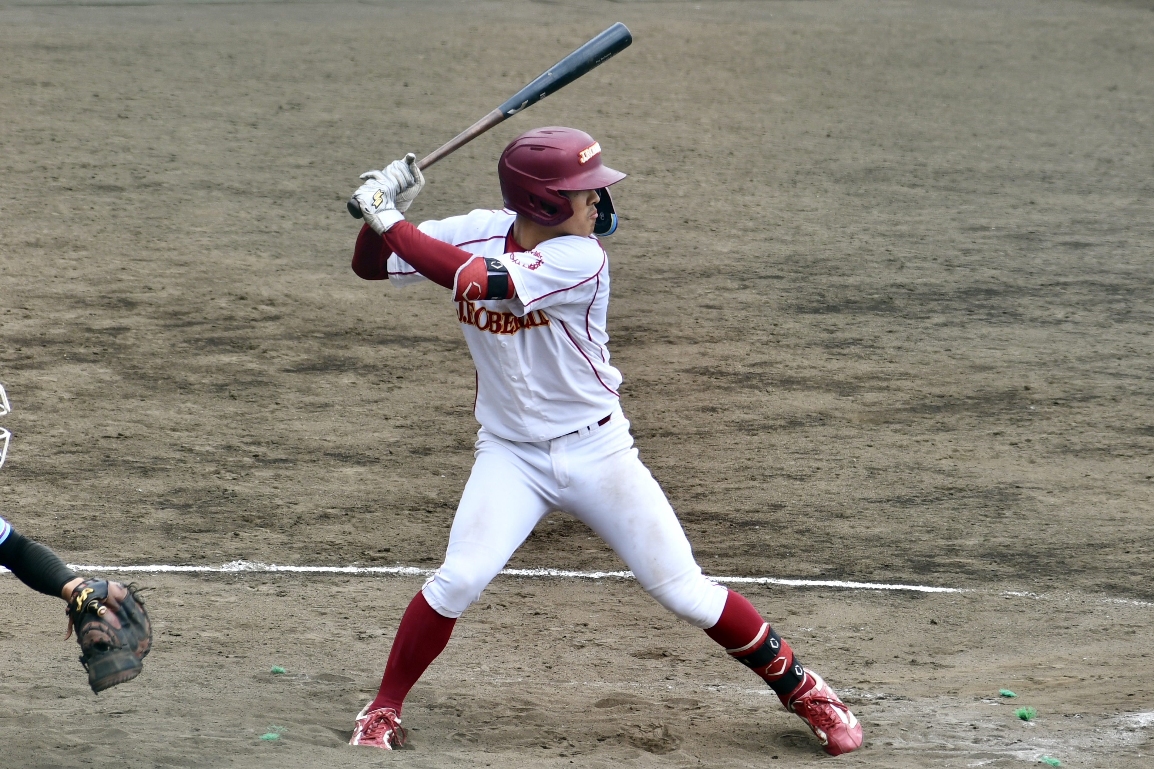 9回土壇場の場面で逆転の2点タイムリーを放った枯木拓渡(LA4年・横浜)