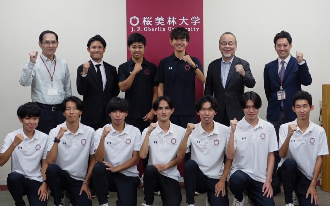 「チームの過去最高順位を成し遂げます!」と熱く目標を宣言した主将の佐藤亘さんの言葉を受け、畑山学長は、「あと1週間に迫り、プレッシャーもあるだろうけれど最後まで諦めずにやりきって欲しい。体調管理に気を付けて、これまで練習してきた軌跡は消えないのだから、気持ちで負けないように。」と選手の緊張を解きほぐすように話しました。