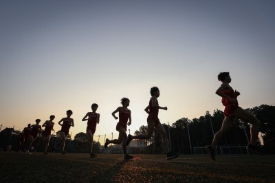 速くなるための工夫は部員全員で考え、実践しています。筋肉トレーニング、イメージトレーニング、さらに骨盤の仙腸関節の動きに着目した新しい身体操作「クアトロトレーニング」も導入。その成果はだんだんと現れはじめ、最近では部員の9割が自己ベストを更新するまでになりました。
