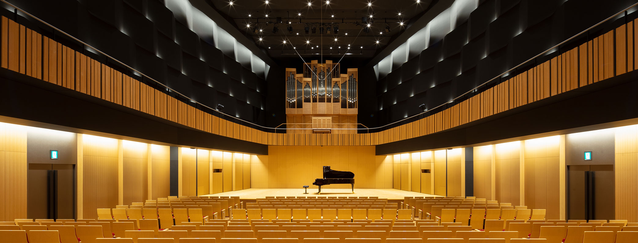 2022年4月「桜美林芸術文化ホール」が完成しました。ギャラリーに加え、演劇・ダンスの「ストーンズホール」(250人収容可)、パイプオルガンが設置された音楽ホール「プロビデンスホール」(380人収容可)が整備され、学生たちの実技や学びの成果の発表の場となります。さらには、地域との交流を目的とした「ひなたやま交流プラザ」「ひなたやまテラス」も併設し、地域と共生しながら、芸術創造や地域との交流・発信の拠点を目指していきます。